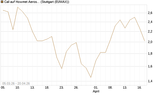 | Call auf Howmet Aerospace [J.P. Morgan Structured Products B.V.] - Kursinformation |